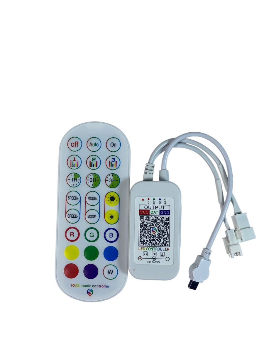 دائرة تحكم مخصصة لشرائط وبروفايل RGB تتيح لك تغيير الألوان وتشغيل المؤثرات بسهولة من خلال ريموت كنترول، لتحكم كامل في أجواء المكان.