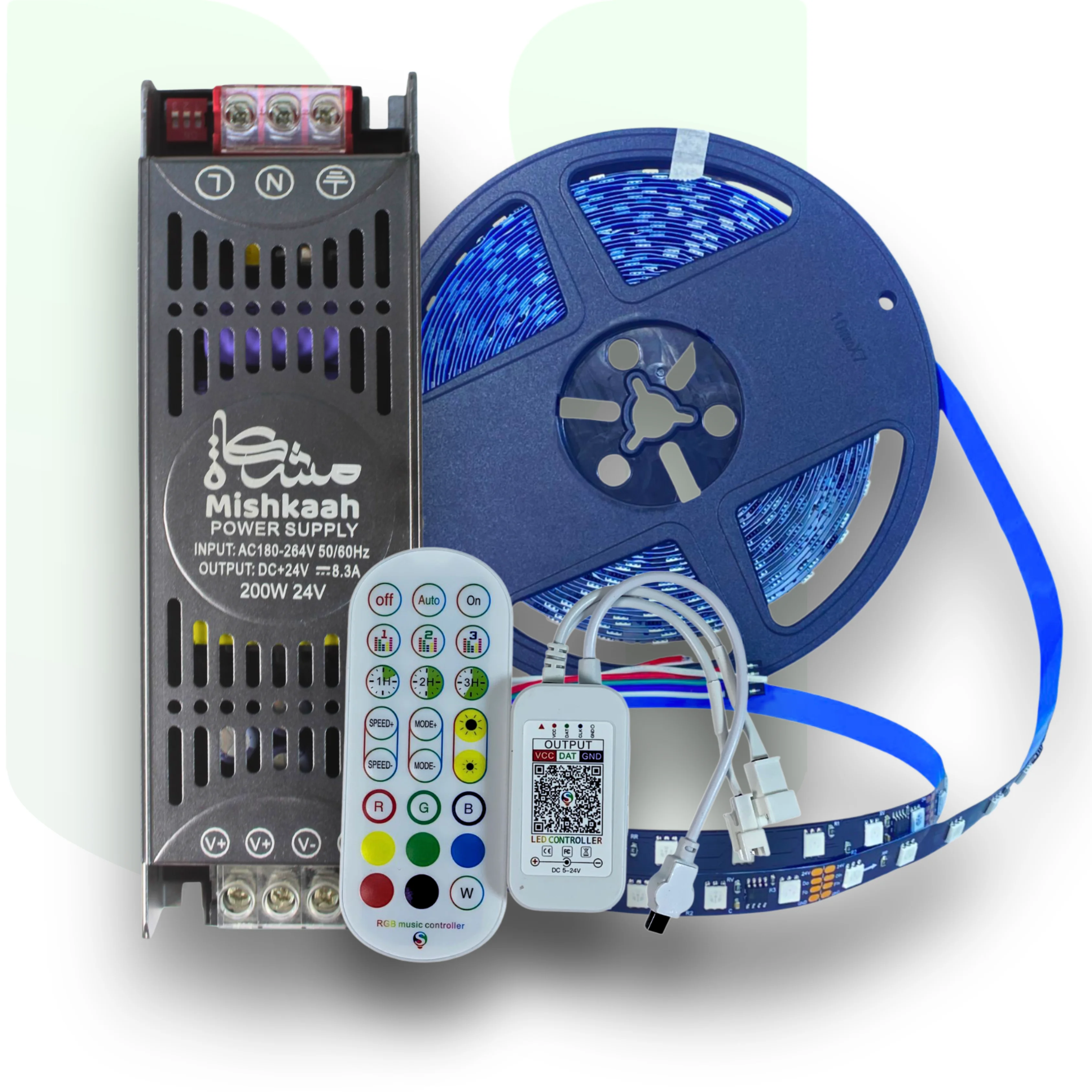 شريط ليد + دائرة RGB + ريموت + باور 200 وات 24 فولت